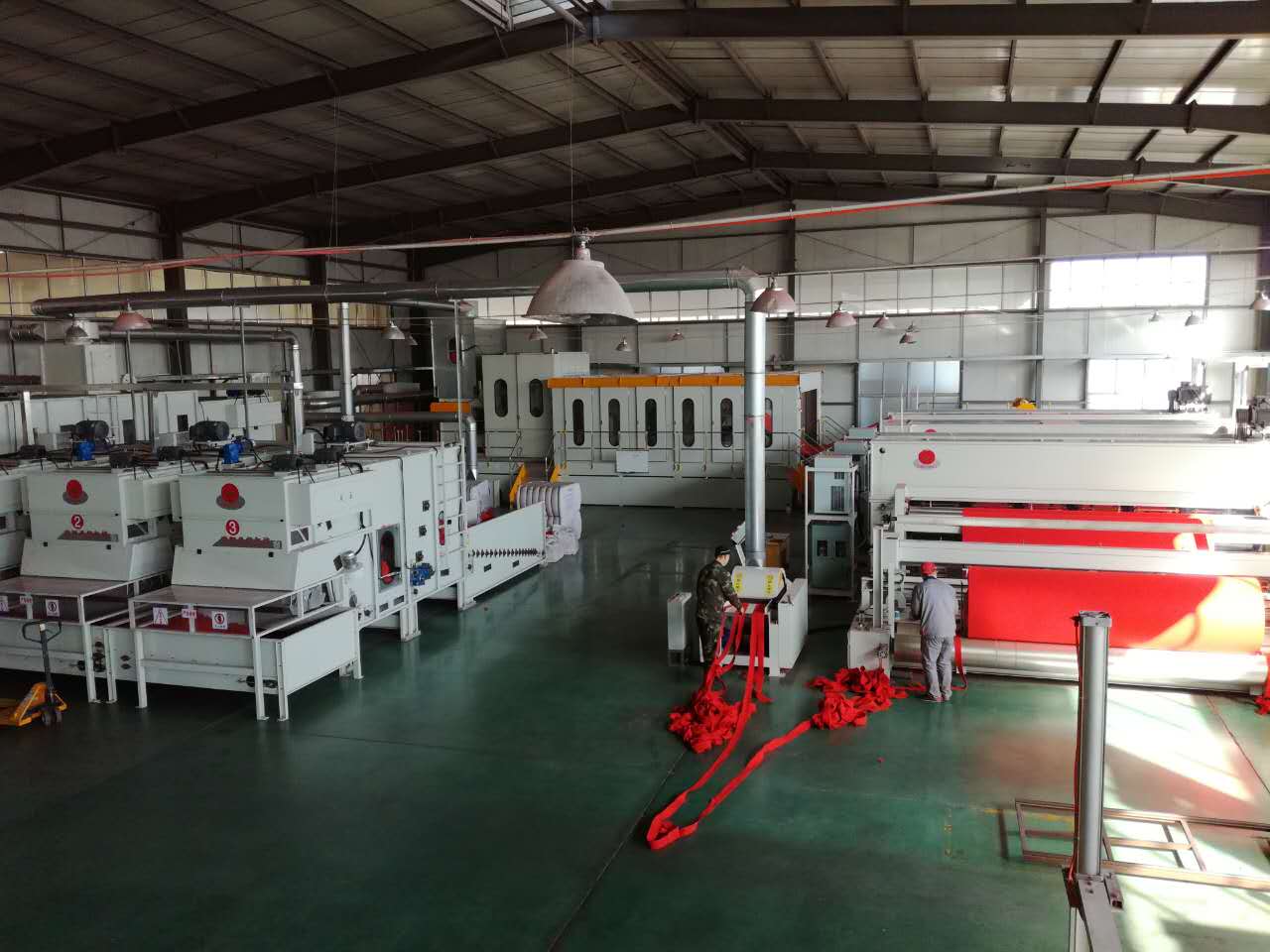 公司總投資1億余元,首期工程已完成投資3000萬元。現(xiàn)已建設標準廠房15000余平方米、引進多條無紡布生產(chǎn)線。其中,針刺無紡線4條、起絨機兩臺、電腦提花機1臺、條紋機1臺、地毯整理烘干定型線兩套。